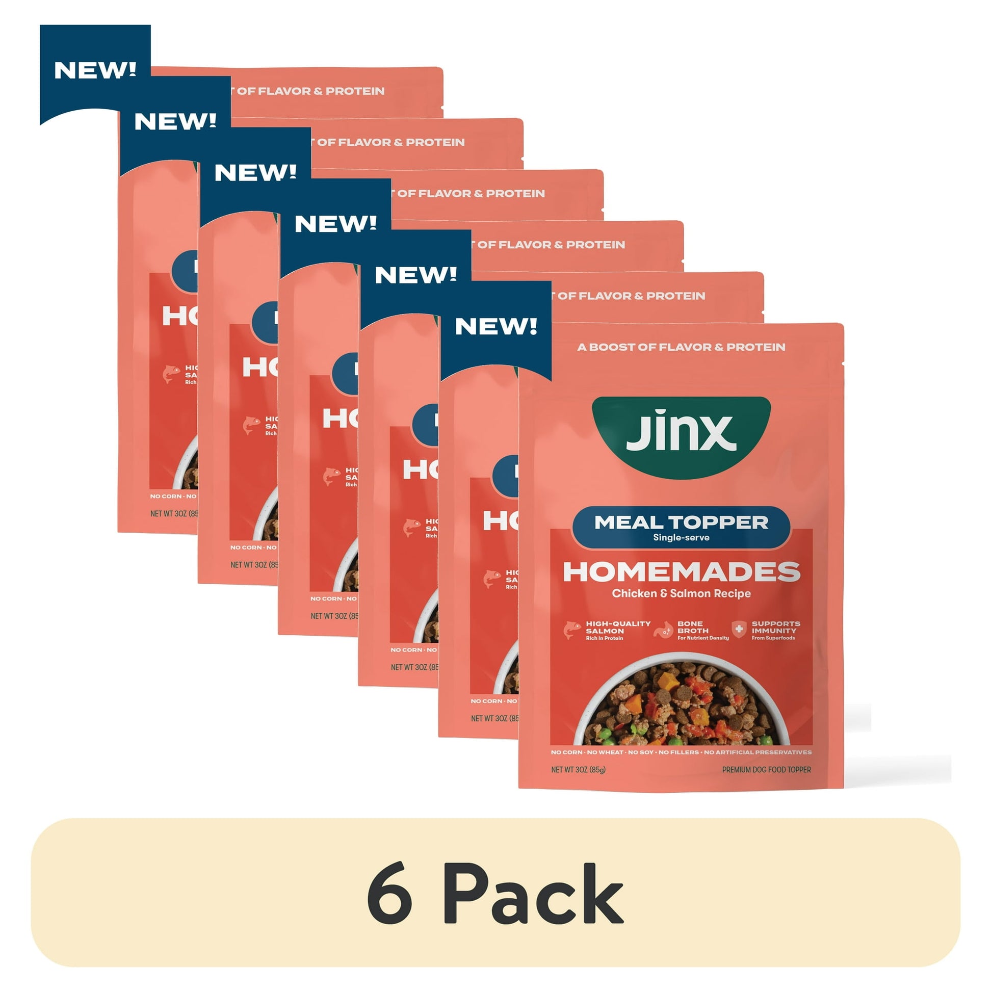 (6 pack) Jinx Homemades Chicken & Salmon Topper,3oz.Pouch