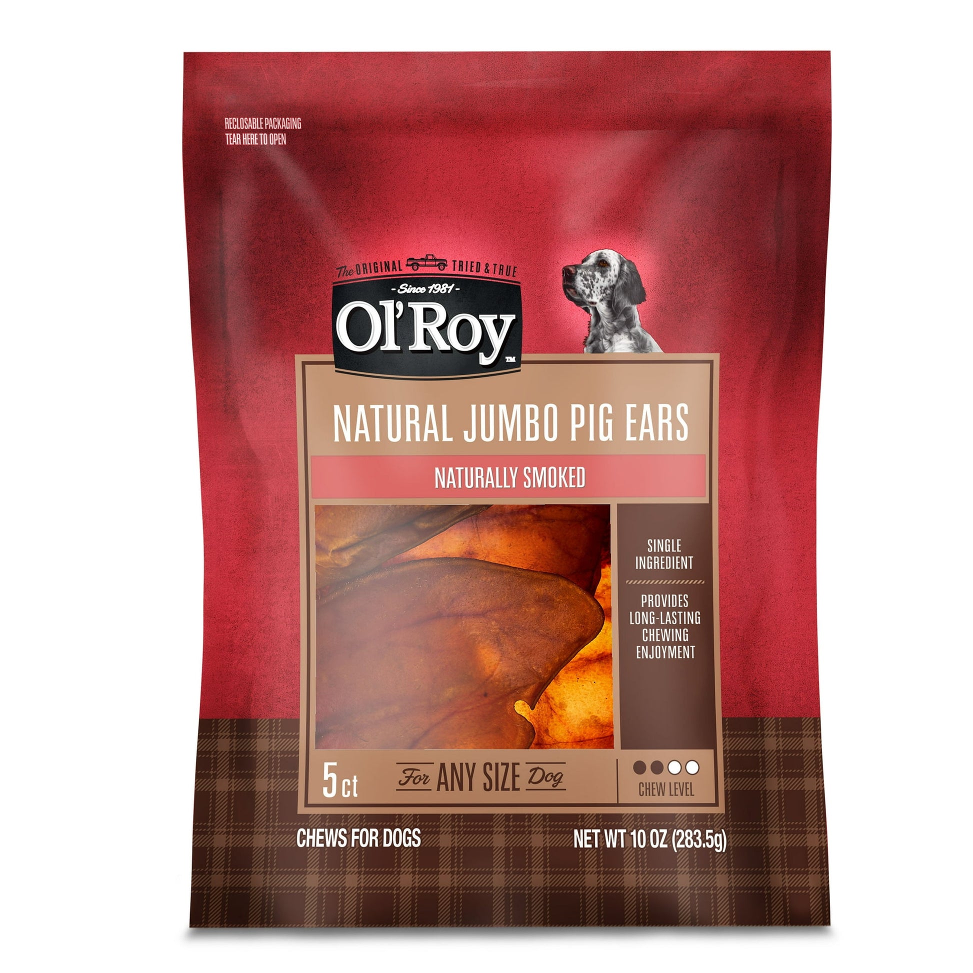 Ol' Roy Smoked Jumbo Pig Ear Chews for Dogs, 10 oz, 5 Count, Pet Treats, Dry