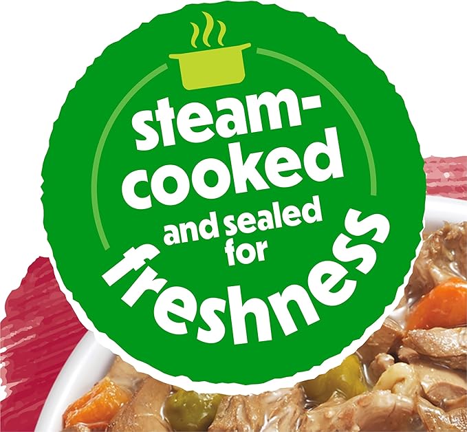 Feed your dog a meaty and delicious meal with Purina Beneful Prepared Meals Beef Stew wet dog food. Watch him devour every bite of this savory, high-quality dog food with tender, meaty chunks, wholesome grains, veggies and flavorful dog food gravy. This thoughtfully crafted recipe is made with real beef to provide a source of high-quality protein that supports his strong muscles. With a blend of real veggies you can see, including peas and carrots, rice and barley, your pal gets a delicious recipe that offers him the nutrients he needs daily. This Purina Beneful wet dog food entree supplies 100 percent complete and balanced nutrition for adult dogs. Your dog is sure to love sinking his teeth into this prepared gravy dog food that contains no artificial colors, flavors or preservatives, and you can feel good about providing him with a mouthwatering meal that contains 23 essential vitamins and minerals. We package each wet dog food recipe in a reclosable tub to make it easy to store leftovers.